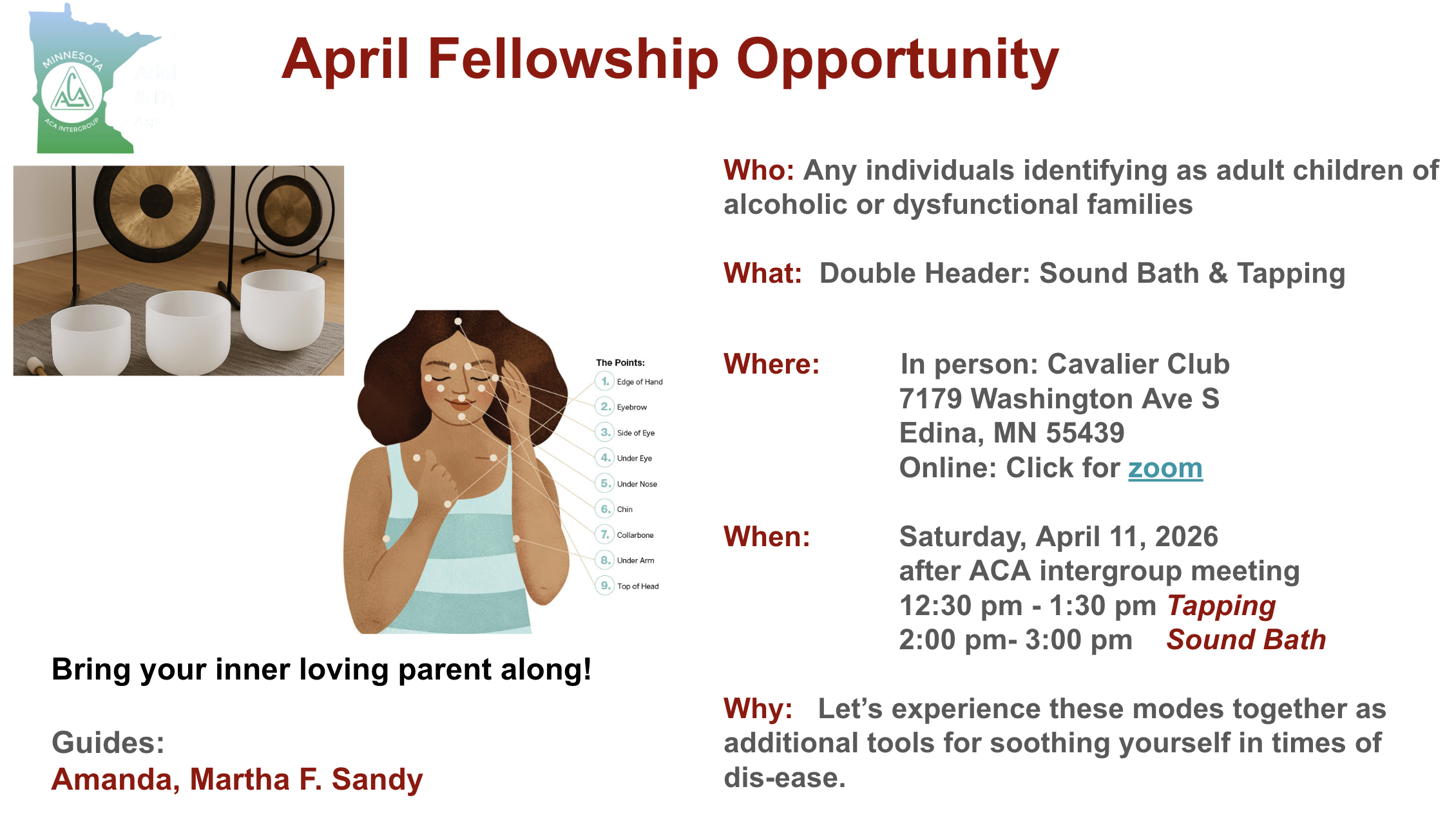 Fellowship Focus: April – Tools for Self-Soothing- Sound Bath & Tapping
